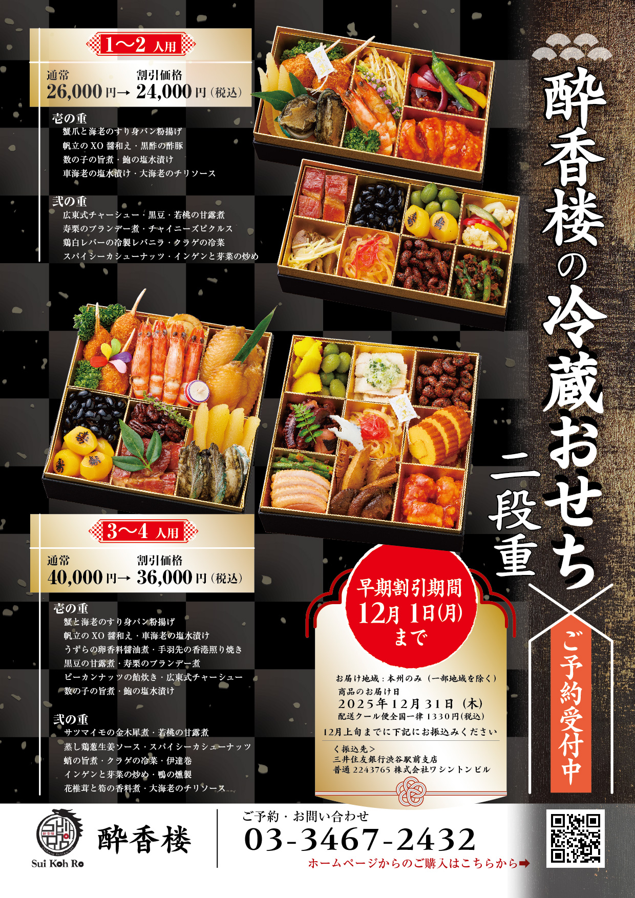 毎年ご好評を頂いている、酔香楼のおせちの予約受付を開始いたしました。